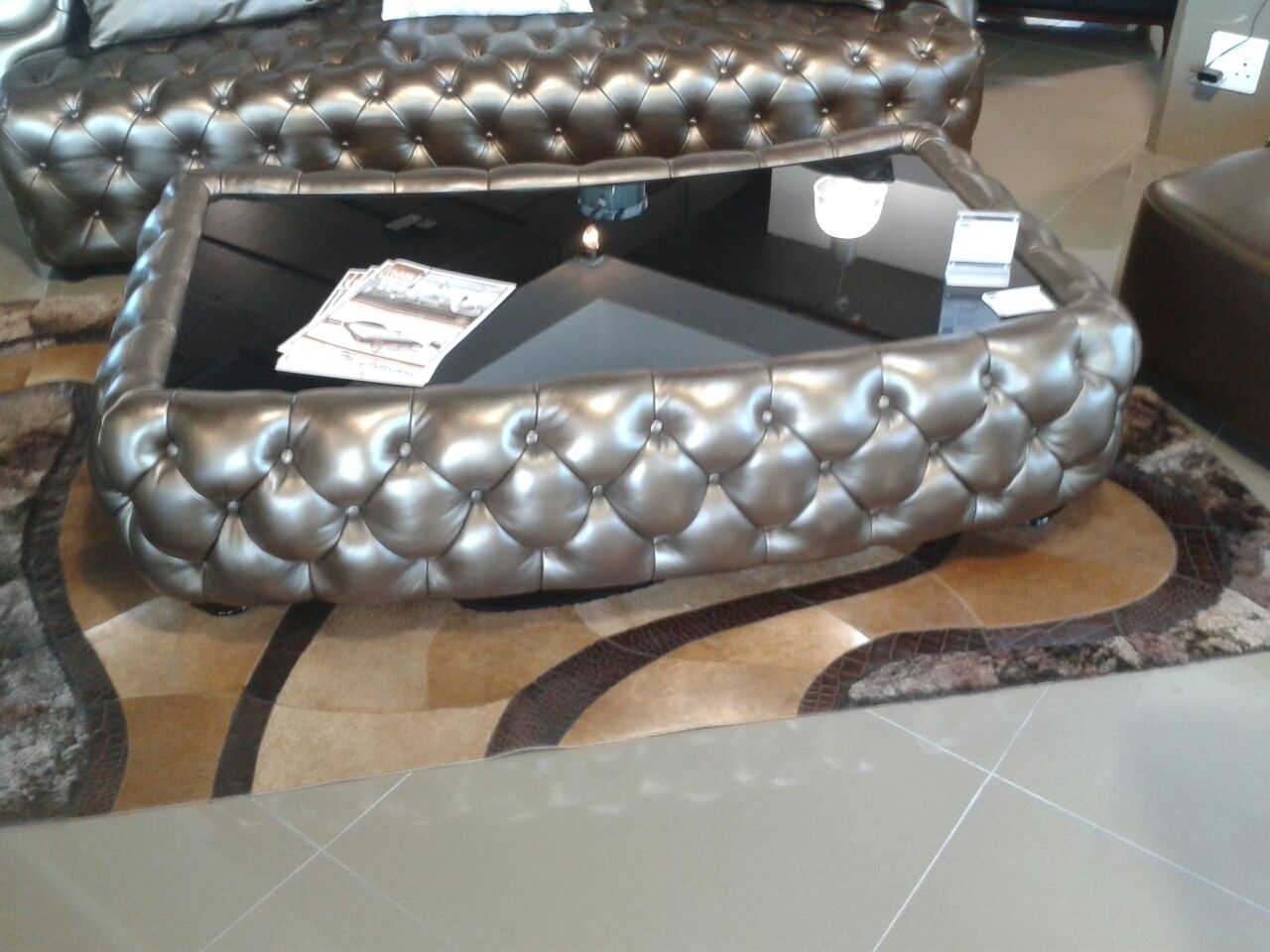 Platinum leather lounge suite with leather glass table available