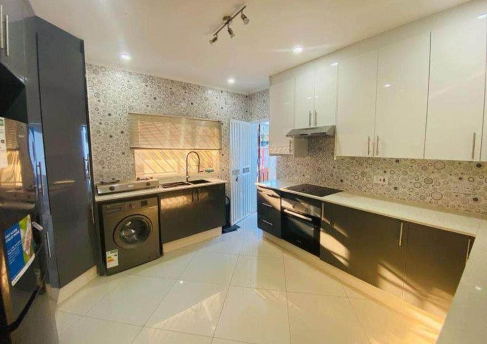 Main with ensuite, BICs, fitted kitchen, electric gate and intercom, sensors, solar geyser, single lockup garage, paved, carpot. 400sqm. Title Deed. $150 000. 0713149658
