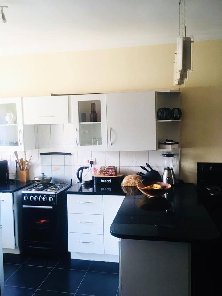 A 2 bed roomed garden flat with main ensuite, open plan fitted kitchen and lounge, common toilet and bathroom, private garden and a borehole. Tittle deeds are available. Gated community close to all amenities. Price is $130,000 USD